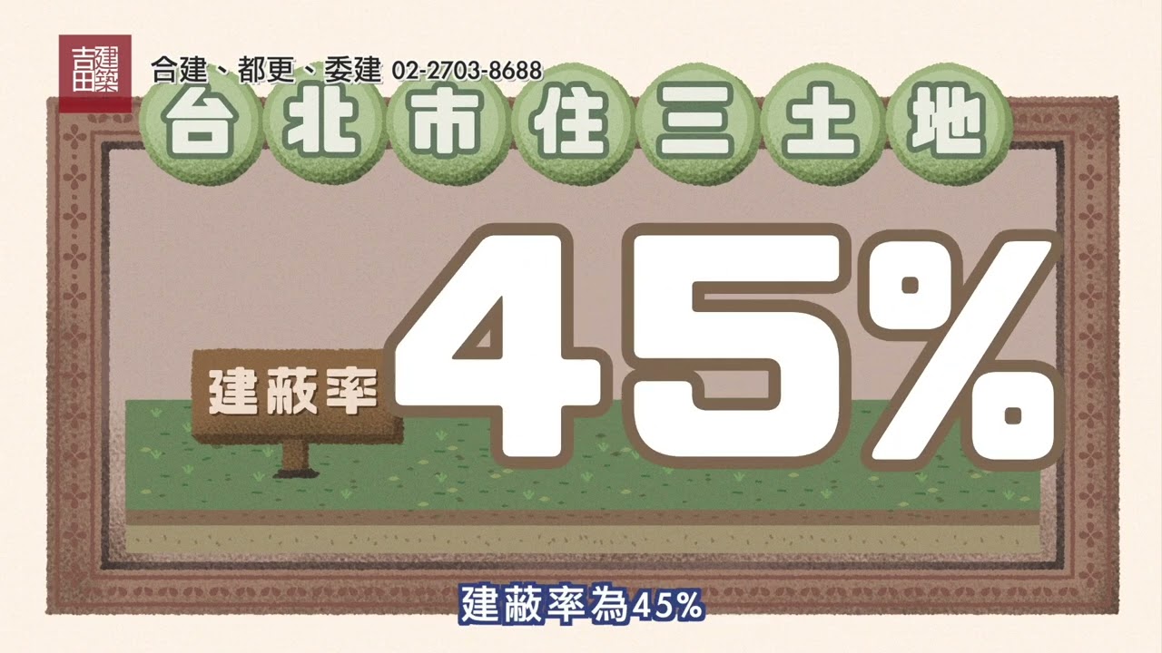 比如說台北市100坪的住三土地,建蔽率為45%,規劃時建商只能在45坪土地上興建,