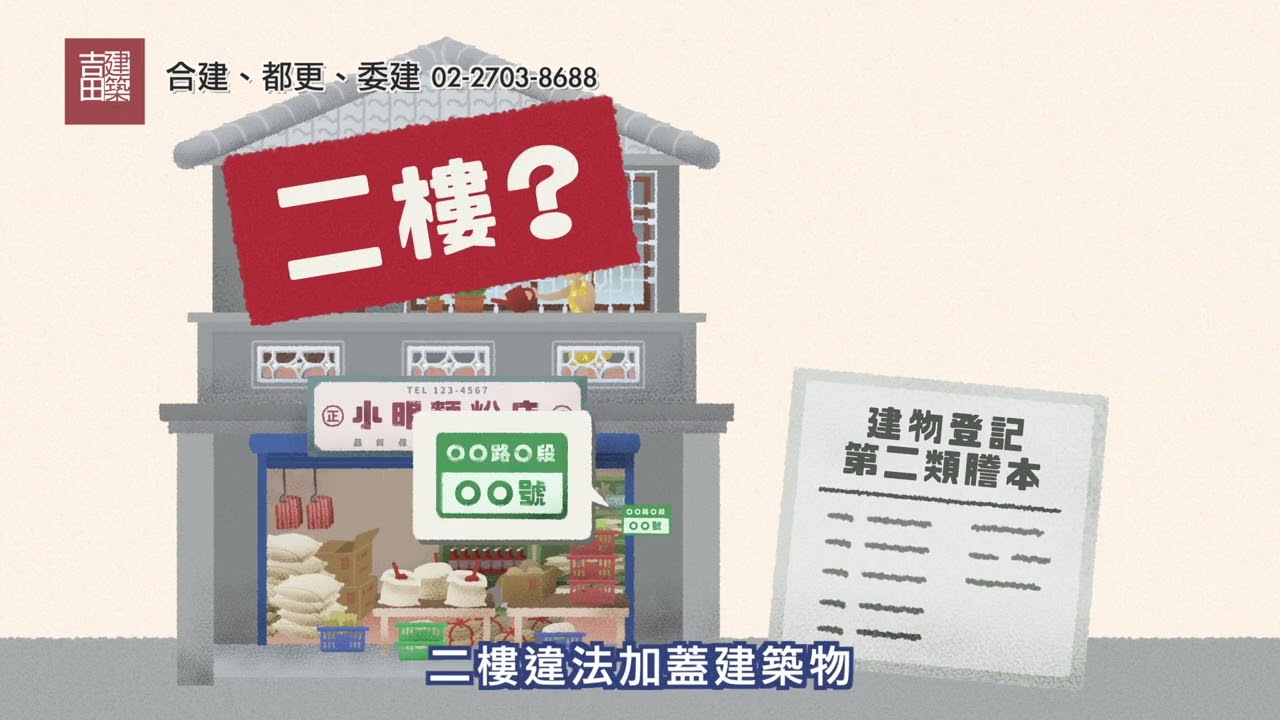 二樓違法加蓋建築物,沒有建物產權,也沒有土地持分,表示不是合法建物。