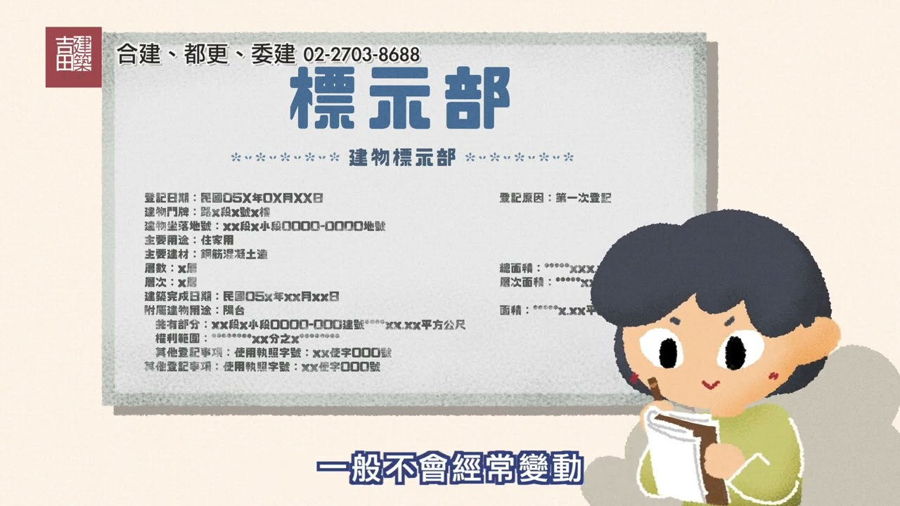 記錄本筆土地或建物的基本資料,除非土地重劃等重大變動外一般不會經常變動。
